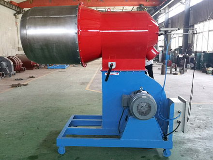 直徑小于20mm的煤先由煤粉破碎機破碎,煤粉通過軟管輸送到主燃燒室,再由油槍引燃。 同時,鼓風機通過后蓋內的圓形旋轉風道向主燃燒室提供風,風沿燃燒室內壁前進,高溫氣流與煤粉混合后強烈燃燒,高溫火焰從出火口噴出 并進入干燥滾筒加熱冷骨料。